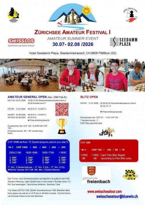 ZÜRICHSee AMATEUR Open (Max. 2399 ELO) & Blitz (Offen/Open, kein/no FIDE limit)